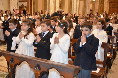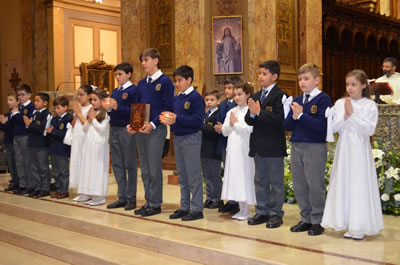 En el mes de septiembre, los alumnos de 3º grado reciben el Sacramento de la Eucaristía en la Iglesia Catedral Metropolitana, de manos del Pbro. Fernando Giannetti, quién nos acompaña en la preparación de los chicos y en la Catequesis para los padres.