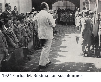 El 10 de abril de 1918 se concreta el ideal vocacional del Dr. Carlos María Biedma: abre sus puertas la ESCUELA ARGENTINA MODELO. En ese emprendimiento no estaba solo.