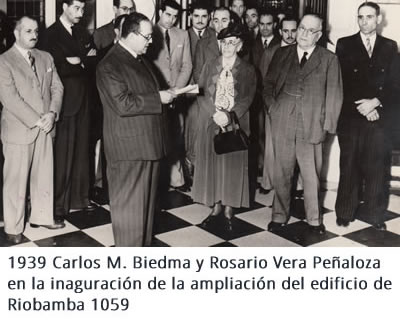 En 1942 el fundador adquiere una casa vecina (Riobamba 1061-1071) perteneciente a la familia Aguirre y logra, con acierto arquitectónico, el gran frente que hoy identifica a la institución desde la calle Riobamba.