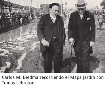 En 1924, Biedma construye en el campo de deportes, un mapa en relieve de la República Argentina, en 1926 un planisferio y finalmente en 1934 otro de Sudamérica de 70 metros de largo por 40 metros de ancho. Estos mapas estaban abiertos a alumnos de otras escuelas y a turistas. Con estos mapas, a Escuela adhirió al IVº Centenario de la Fundación de Buenos Aires, en concordancia con los festejos dispuestos por el Intendente Mariano de Vedia y Mitre, amigo y colega del Dr. Biedma.