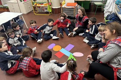 El juego relacionado con la música y el movimiento, el énfasis en las emociones al inicio de los intercambios, el afianzamiento de rutinas e interacciones mediadas por el idioma inglés, el desarrollo de proyectos y las sesiones de lectura compartida (shared reading) son actividades habituales en las clases de Inglés.